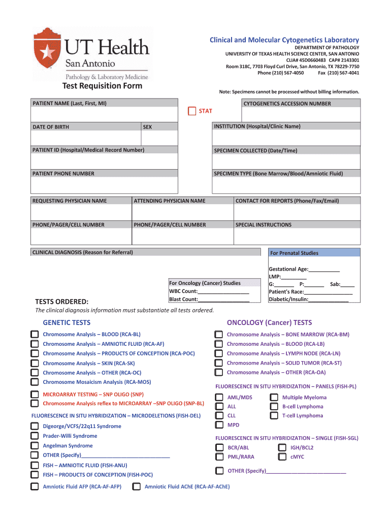 Clinical and Molecular Cytogenetics Laboratory Form