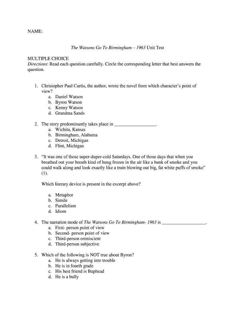 The Watsons Go to Birmingham Final Test PDF Form