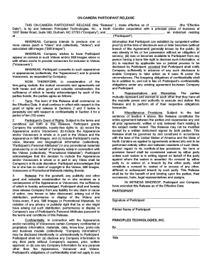 An on camera release form is a document that grants permission for the use of recorded footage featuring individuals. This form is particularly essential in media and production settings, ensuring that all parties agree to how their likeness will be used. By utilizing airSlate SignNow, you can create and manage on camera release forms efficiently.