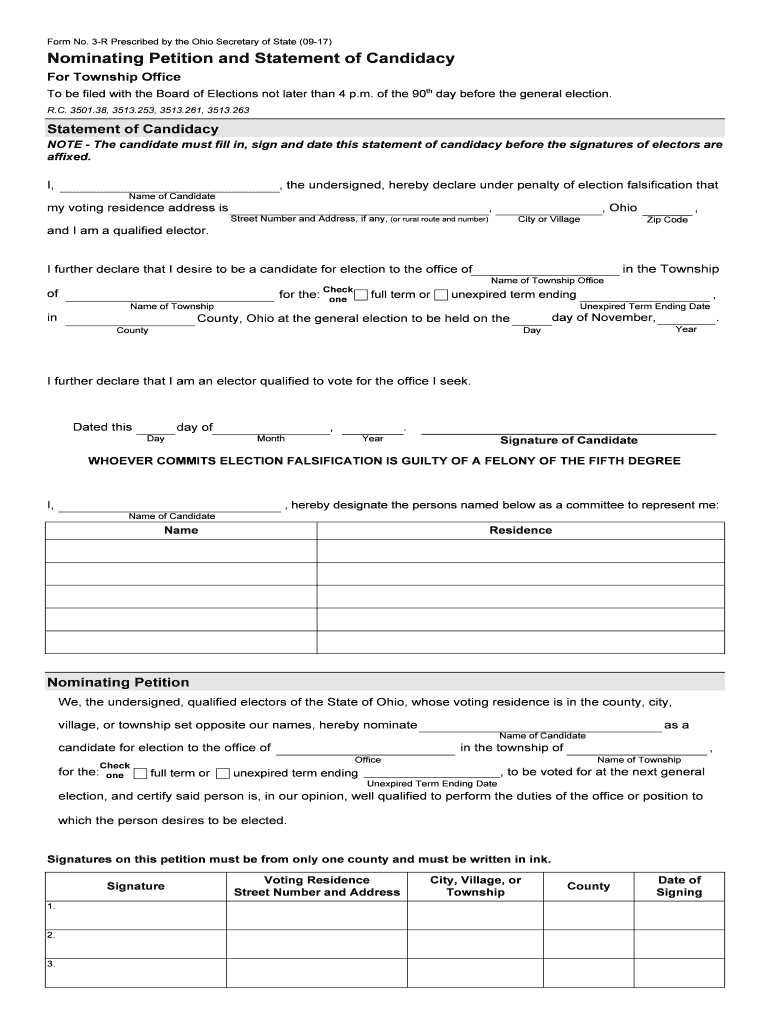 Key elements of the 3 R Prescribed By The Ohio Secretary Of State 09 17 form include: