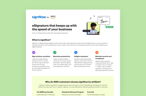 Get enterprise features for less with airSlate SignNow on the AWS Marketplace